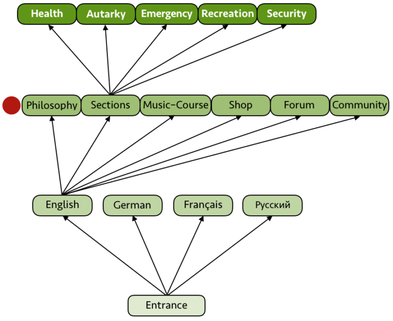 From here you can reach six different building sections.